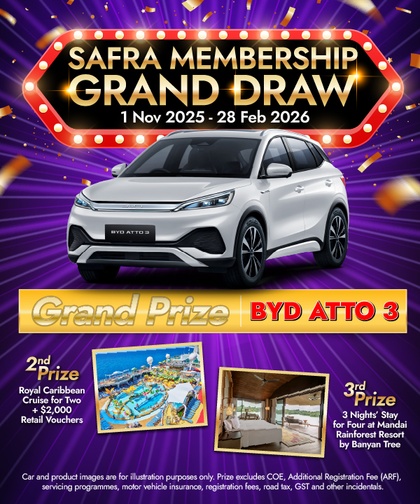 Renew or sign up for your SAFRA Principal/Dependent Membership between 1 November 2025 – 28 February 2026 to earn bonus chances: