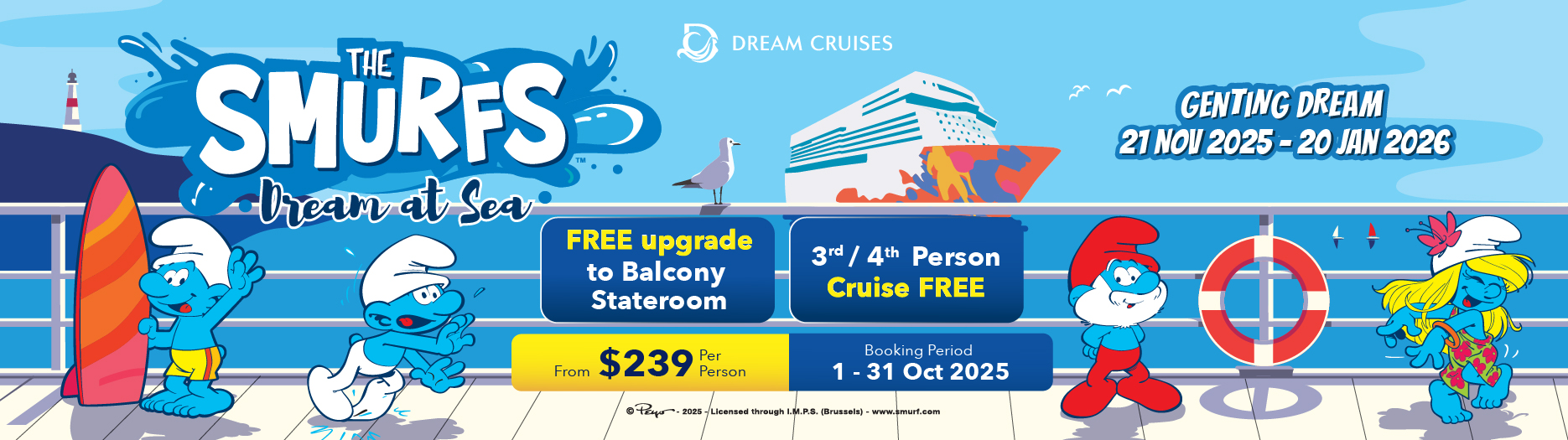 Guests sailing on 2, 3 and 5 Nights Cruises onboard the Genting Dream during this special period are in for a treat! Guests will enjoy a vibrant lineup of The Smurfs-themed activities, exclusive entertainment and family friendly experiences designed to delight guests of all ages. You’ll even get the chance to meet your favourite characters - including Papa Smurf, Smurfette, Clumsy and Brainy!