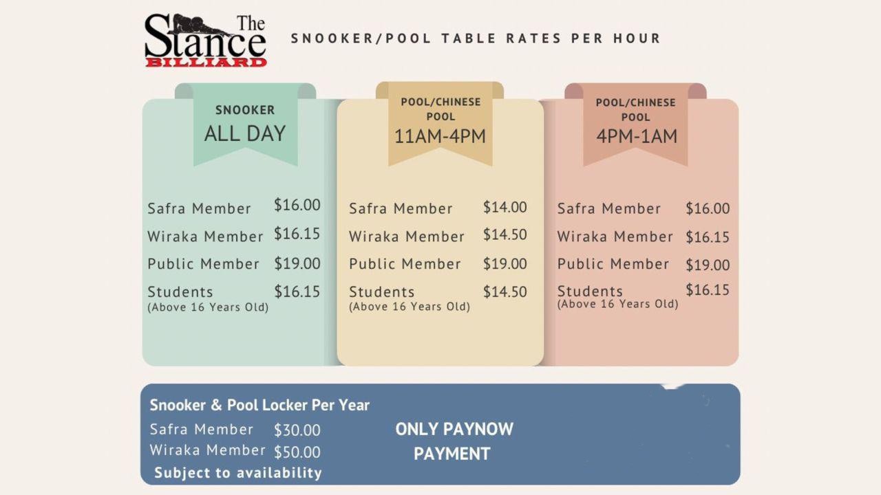 The Stance Billiard provides a chance to unwind and socialize in a classy and stylish atmosphere that's designed and fitted with the brand new Wiraka Special Snooker table, World 9 Tournament Pool Table, and Classic Chinese Pool tournament table with comfortable seating.