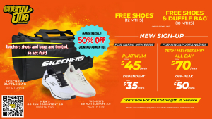 Enjoy a special *50% OFF joining/admin fee this March! Plus get FREE Skechers merchandise worth up to $208, with Go Run Shoes at 12 months membership or Go Run Shoes plus a Duffle Bag at 18 months membership (while stocks last). Terms & Conditions apply.