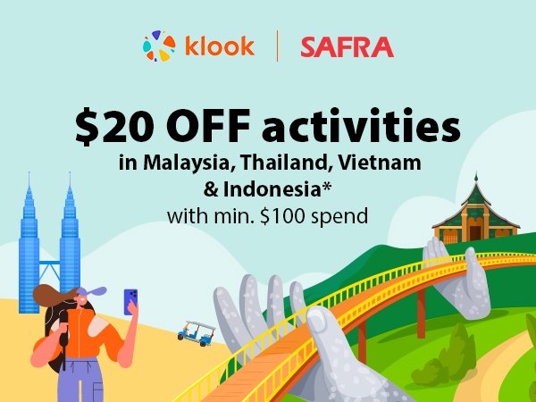 Klook (SAFRA App Exclusive) - $20 Off Malaysia, Thailand, Vietnam and Indonesia Activities on Klook with Min. $100 Spend