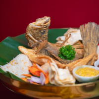 Prosperity Seabass Platter![]() | $31.90 | A symbol of abundance for festive feasting. Whole deep-fried seabass with fragrant garlic rice, crisp emping belinjo, homemade achar, sambal belacan and sambal merah mayo. Ideal for sharing between 2. |
