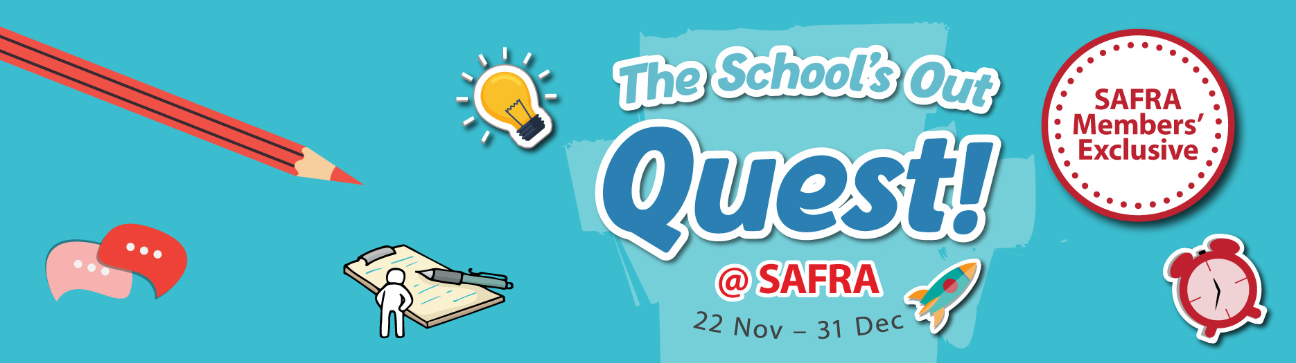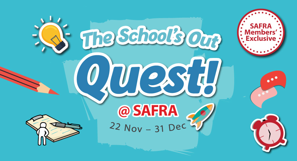 From 22 Nov till 31 Dec 2025, SAFRA members can collect a quest card at the Customer Service Counter at any SAFRA club and complete all questions correctly to receive a $10 club e-voucher. The club $10 e-voucher will be issued to the member in the e-voucher module via the SAFRA mobile app / m.safra Portal upon verification from our Customer Service Officers.