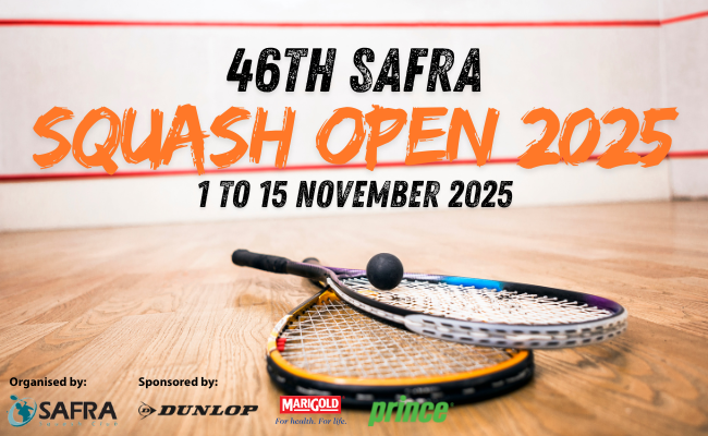Take on the challenge at the 46th SAFRA Squash Open from 1 - 15 November 2025 at SAFRA Toa Payoh!