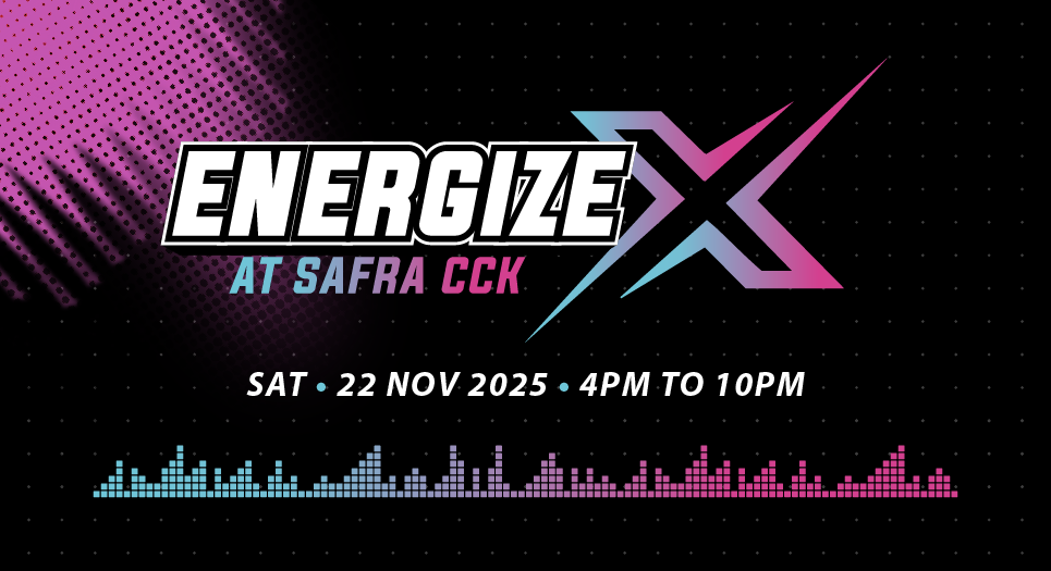 EnergizeX @ SAFRA CCK 2025 is transforming SAFRA Choa Chu Kang into a vibrant after-dark fitness and wellness playground — where fitness meets festival vibes.