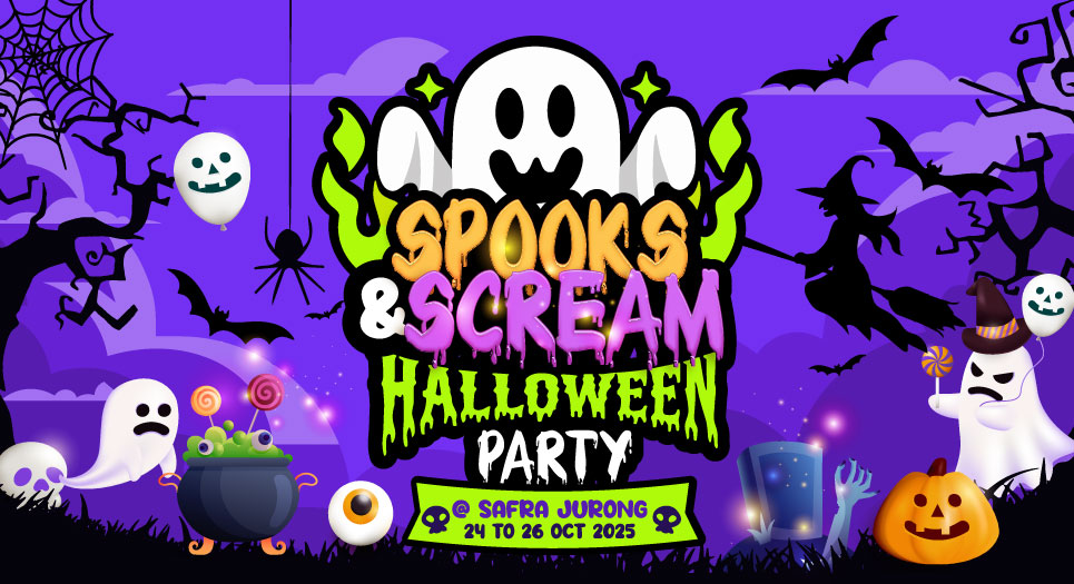 Get ready for a wickedly fun night of spooks and screams! From thrilling games and creepy treats to chilling performances and costume contests, there’s frightful fun for everyone at Spooks & Screams: Halloween Party at SAFRA Jurong!